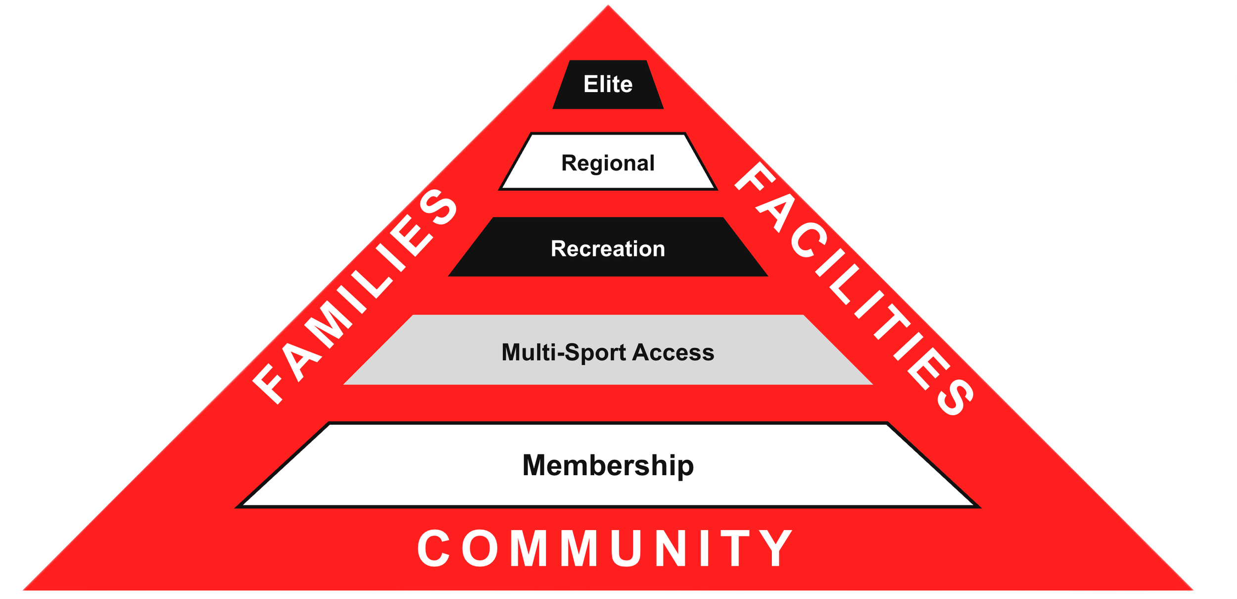 The FLS ecosystem pyramid simplifies a fragmented youth sports system by anchoring access in one membership. Athletes progress through a connected pathway within a unified structure supported by families, facilities, and community—prioritizing access, development, and sustainability.